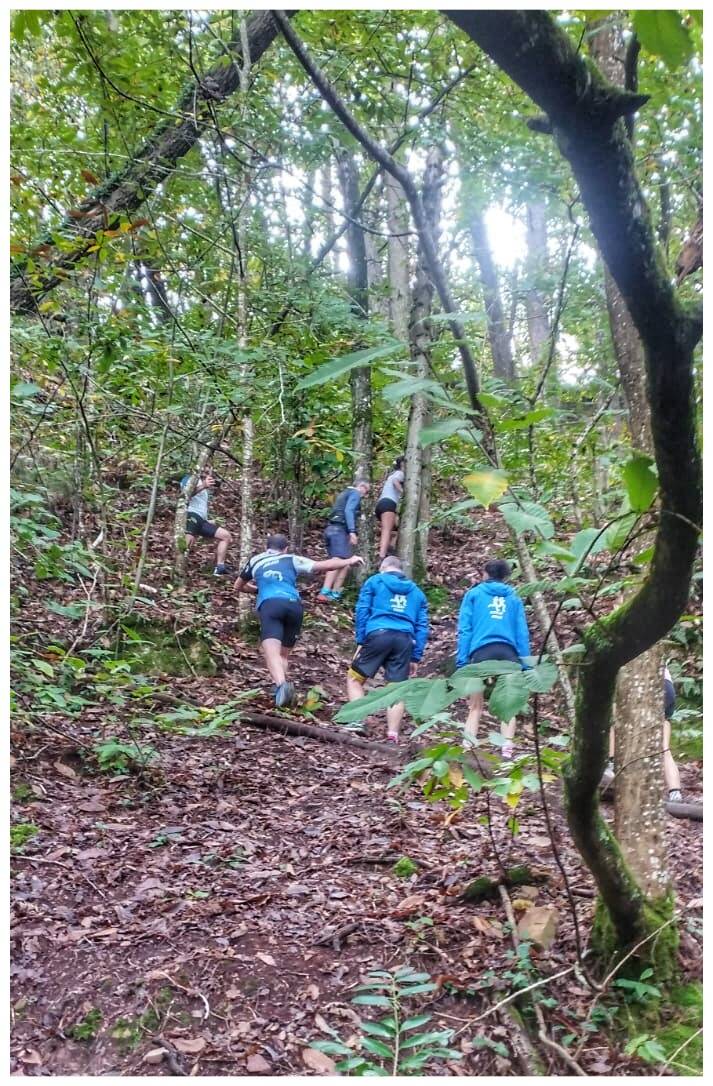 Un peu de hallage, nous suivons l'Oust pour nous diriger vers Courée où une surprise de taille attend celles et ceux qui ne connaissaient pas la "montée des cieux", qui je dois dire se mérite avec des portions bien glissantes. J'en connais un qui est rentré avec une belle marqu, cette paire de mains sur l'arrière du short. 😁